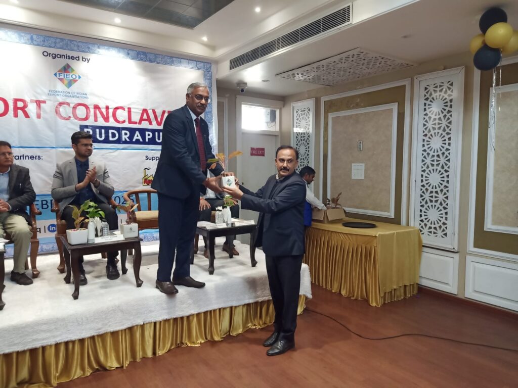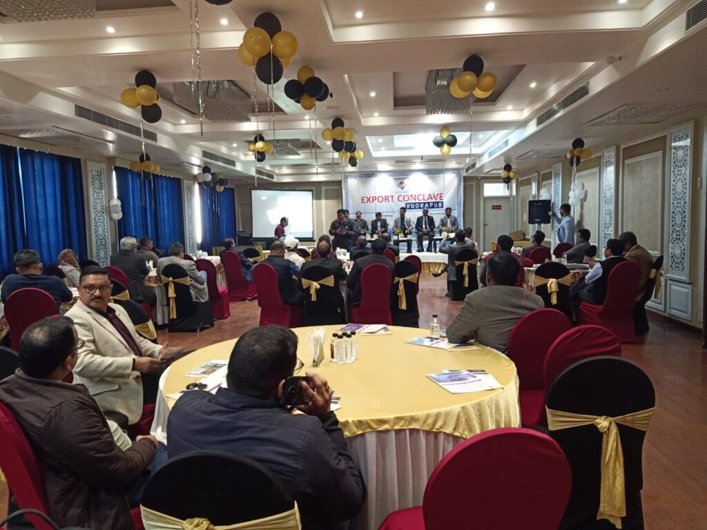 Entrepreneurs, exporters and government officials of Uttarakhand participated in the “Export Conclave 2025” organized at Hotel Rudra Continental, Rudrapur today. The program was organized by the Federation of Indian Export Organizations (FIEO), in which many eminent personalities associated with the industry of the state shared their views. On this occasion, Mr. Hemant Kumar, Assistant Director General Foreign Trade, Mr. Subhash Kandpal, Assistant Director, MSME, Haldwani, Mr. Nishant Bhaskar, Associate Director Credlix, Mr. Sunil Dutt etc. were present. The program was conducted by Mr. Nishant Katyayan.