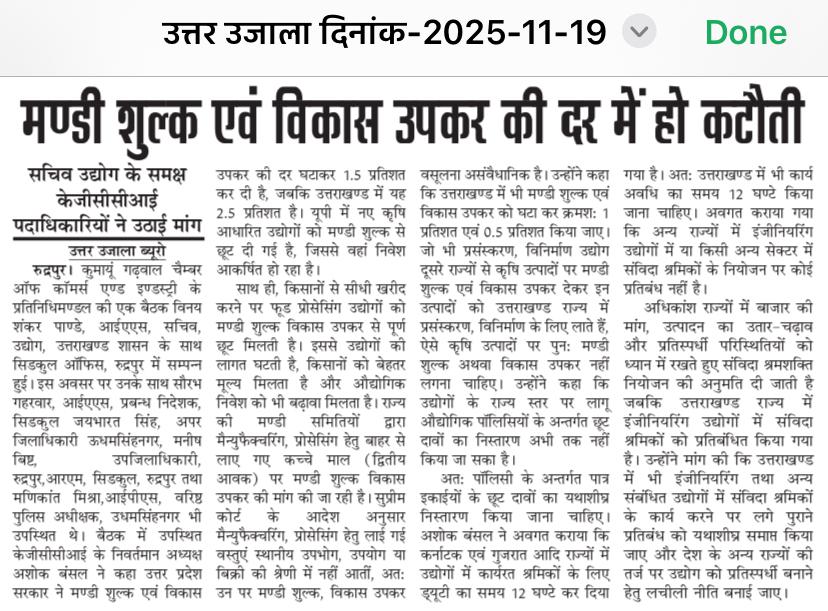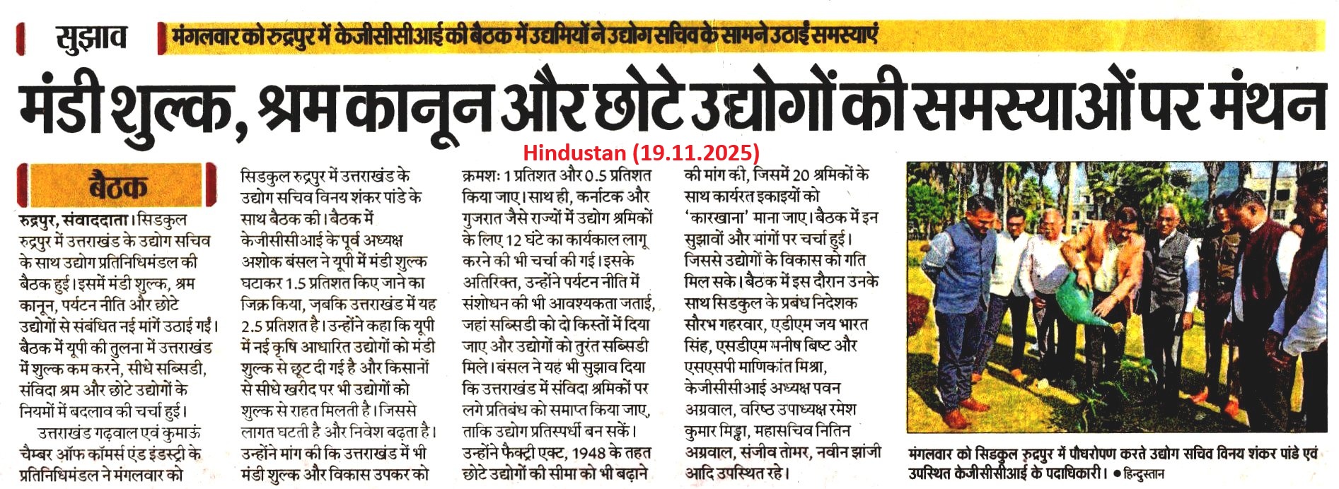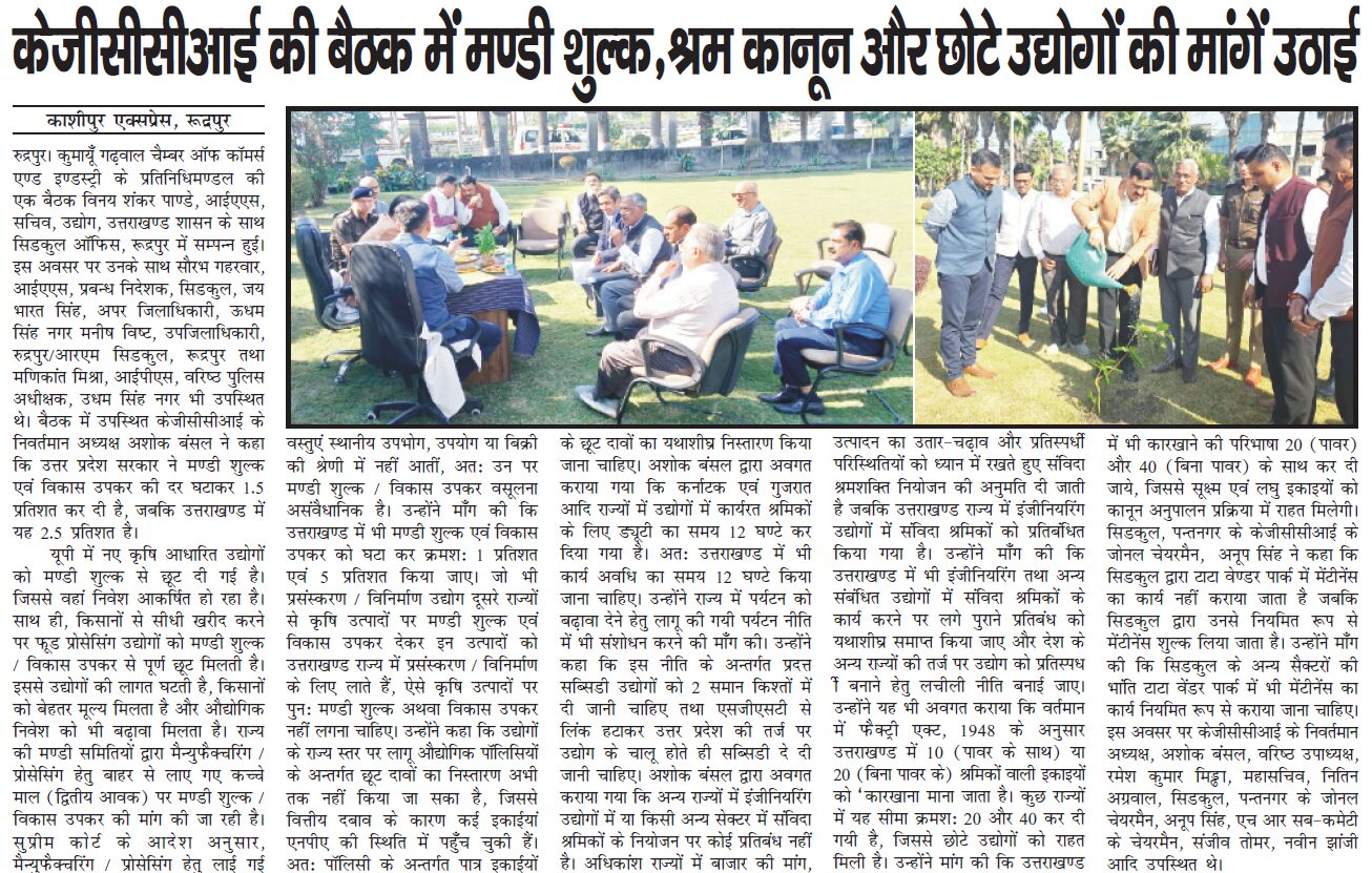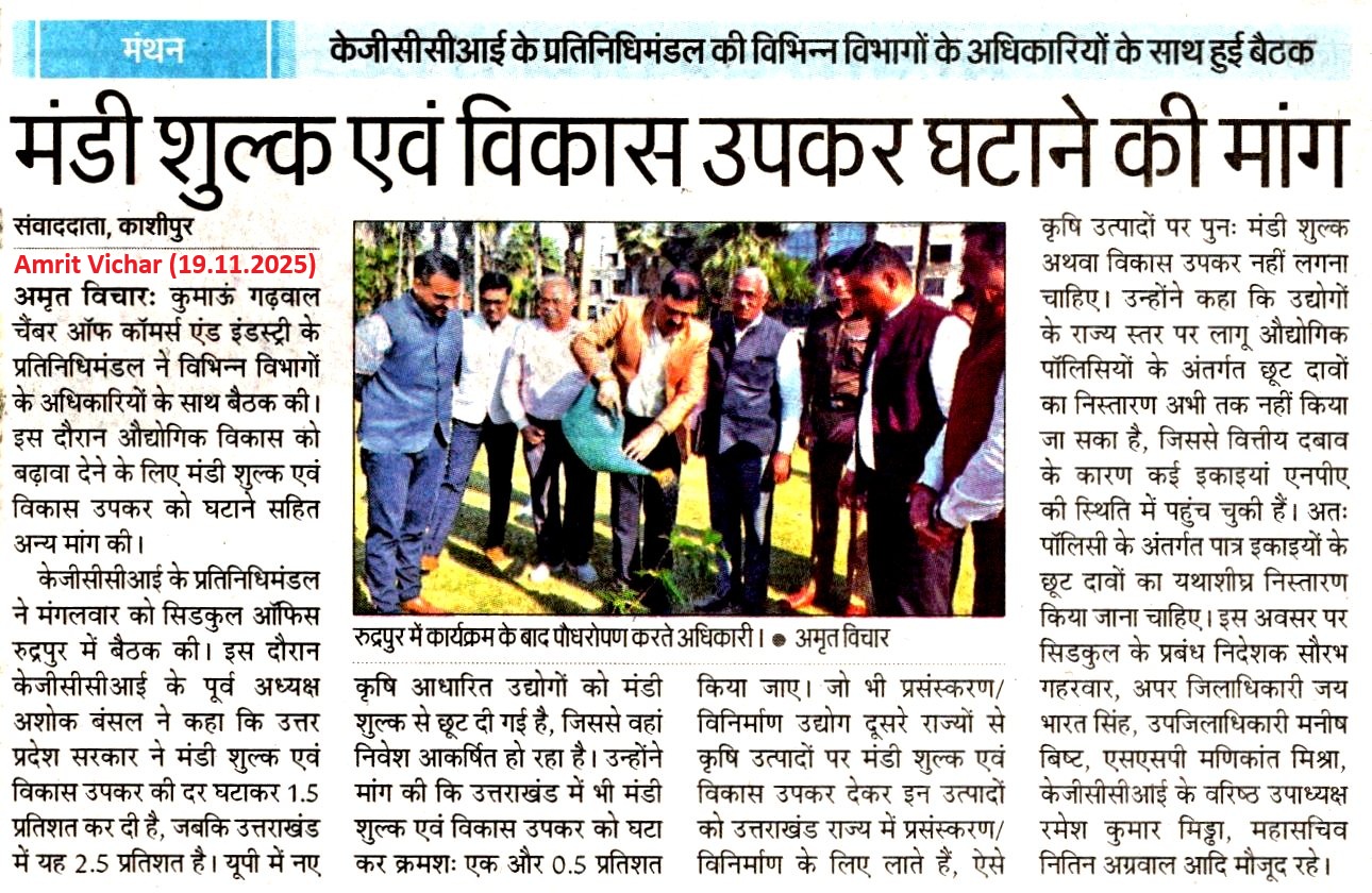 केजीसीसीआई ने मंडी शुल्क घटाने पर दिया जोर (19.11.2025)