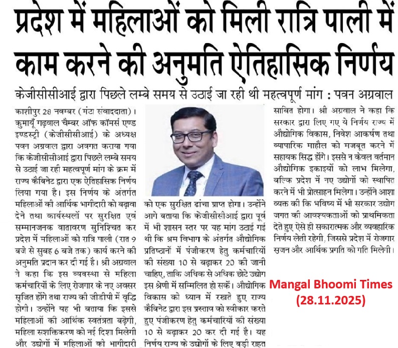 महिलाओं को नाईट शिफ्ट में कार्य की अनुमति देना सराहनीय (28.11.2025)