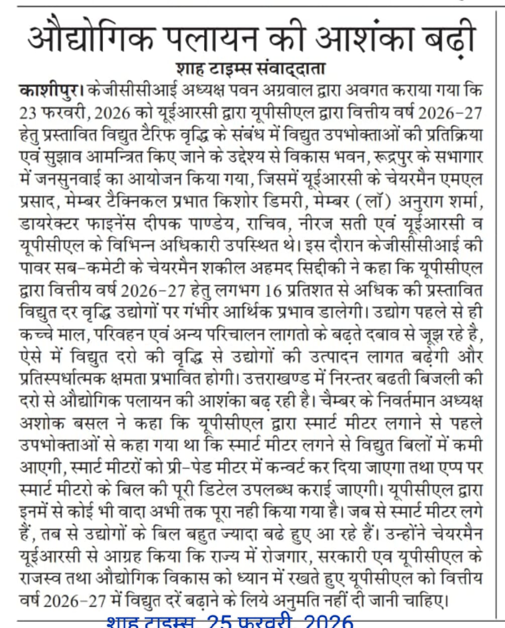 स्मार्ट मीटर लगने के बाद बिजली बिलों पर केजीसीसीआई ने जताई चिंता (28.09.2025)